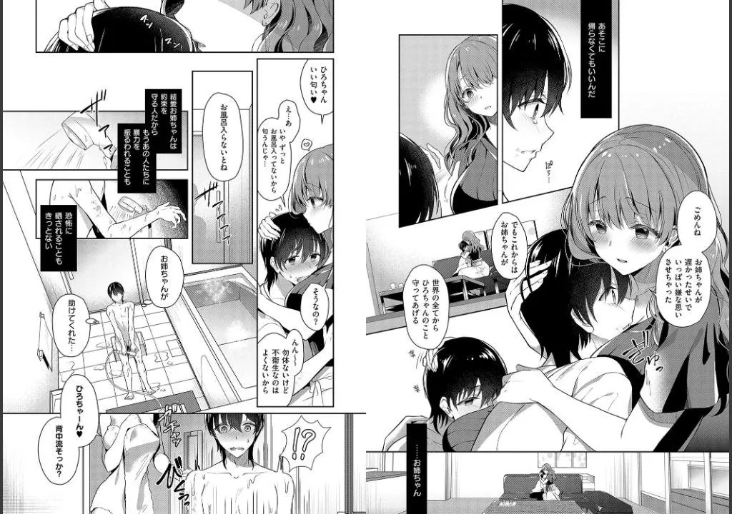 これまでつらかった分も幸せにしようと、お姉ちゃんはお風呂に入ってきて僕の身体を洗い出して??? 思わず勃起しちゃったおちんちんもやさしくキレイな手で扱いてくれて、さらにそのまま初パイズリに初おまんこまで、僕の好きなだけ射精させてくれちゃうJカップお姉ちゃん。夜眠れないときは勝手に夜●いしてヨシ!出かけた先でムラついたら電車の中でも犯してヨシ!!何をしても許してくれちゃう究極の甘やかしお姉ちゃんと、おちんぽが乾くヒマもないぐらい好きなだけずぽずぽしちゃお◆