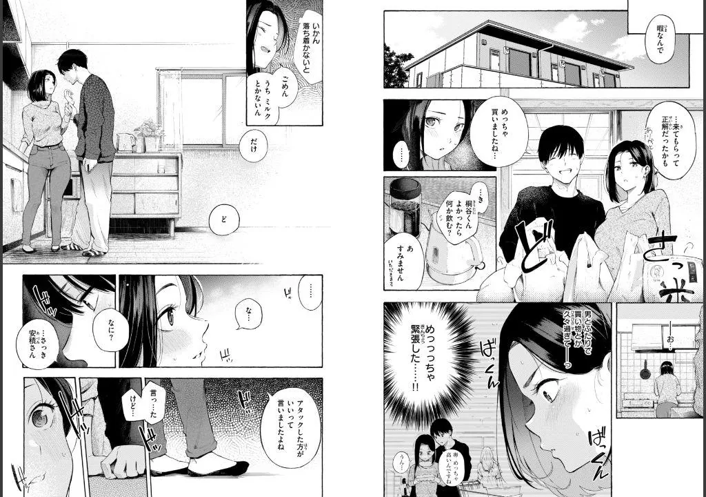 お近づきになりたいなんて思ってたら、彼が胸元をチラチラ覗いて勃起している姿を見てムラムラが限界突破!! 思わず押し倒しちゃって……。