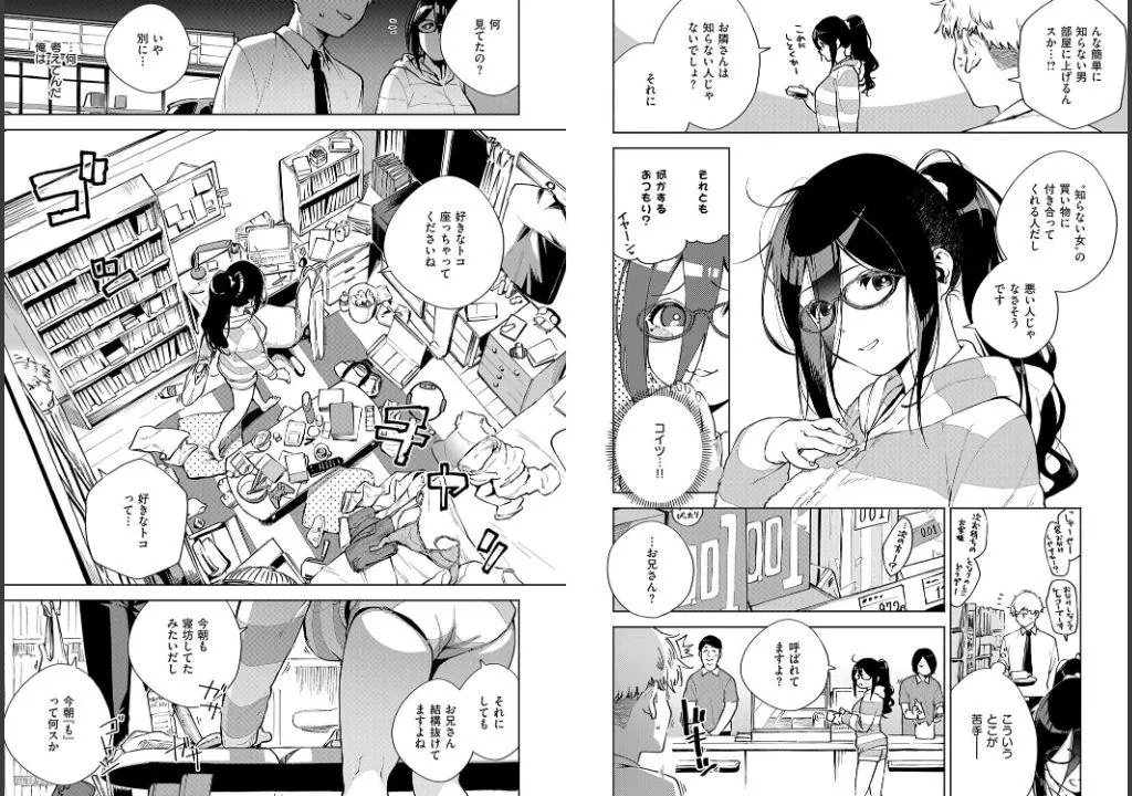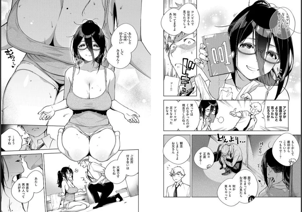 仕事で疲労困憊になった敬悟は鍵を忘れたことをきっかけにメガネ巨乳美人のお隣さん・あやねと交流がはじまることに。
