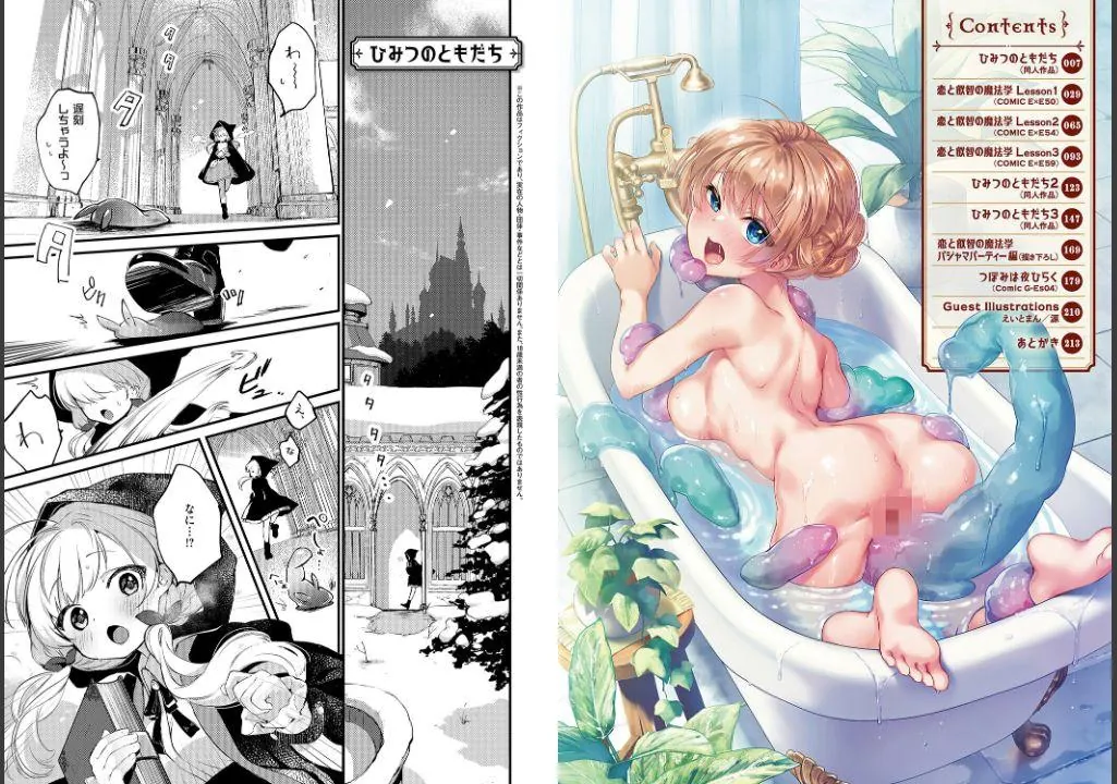 大人気同人シリーズ「ひみつのともだち」に加え、COMIC E×Eにて連載されたスピンオフシリーズ「恋と叡智の魔法学」を収録♪
