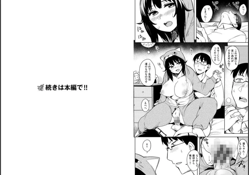 キュートな着ぐるみを身につけた教え子とイチャラブおベンキョー会「学校じゃ教えてくれないコト」を始め、たっぷんオッパイの巨乳幼馴染とドキドキ初体験「おやつのあとで」、お股ユルユルな後輩に押し倒されてヤりまくる「きゃんと すとっぷ」など、ぽっちゃり女子のムッチムチな乳・尻・お腹が100%テンコ盛りな9編を収録!