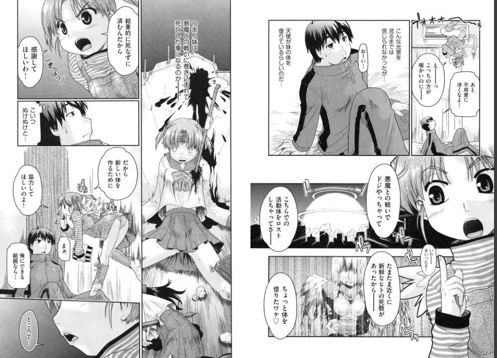 お兄ちゃん、SEX(子づくり)しよっ!!天使in妹 VS 悪魔in眼鏡っ娘の大戦争!?むちプリな美少女二人とのH三昧生活!天使と悪魔の戦いに巻き込まれて死んだハズの妹のカラダに乗り移った天使と、協力するカタチで子作りの励むことになった兄とのハードな膣出しセックスを描いた「妹-HANE-(まいはね)」ほか、「妹-TOMO-(まいとも)」「妹-HINA-(まいひな)」「紅巻学園漫画研究部 初めてのコスプレ」「AGAIN」「AGAIN-2nd edition-」「再会〜後輩のWaitress〜」「悪魔っ娘★Trouble」「夏のすいか」他、ハイレベルな読み切り9本収録!