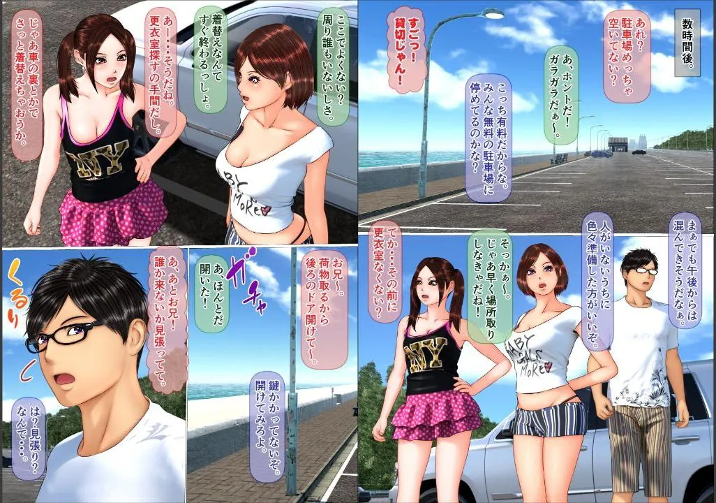 旅行当日、主人公は恵理、その親友の美羽の2人を連れて海に出発する。
