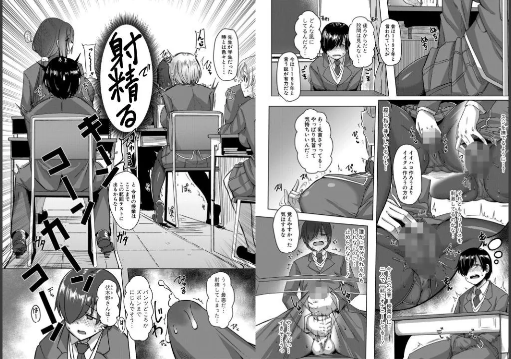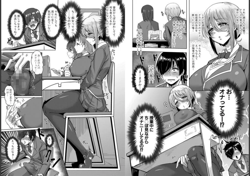 美人でムチムチボディの物静かな同級生・伏木野さんが授業中にこっそりオナニーしている姿を目撃してしまった主人公!実は彼女はエロ好奇心旺盛すぎるドスケベ女子だった!!秘密を共有することになった主人公は、スリリングなシチュエーションを求める伏木野さんに誘われ、授業中の教室で!男子トイレで!使用中の跳び箱の中で!?興奮必至の刺激的生SEXしまくりな学校性活を送ることに!!更にはもう一人のクラスメイト、高身長露出狂女子の大城さんも加わって……!?