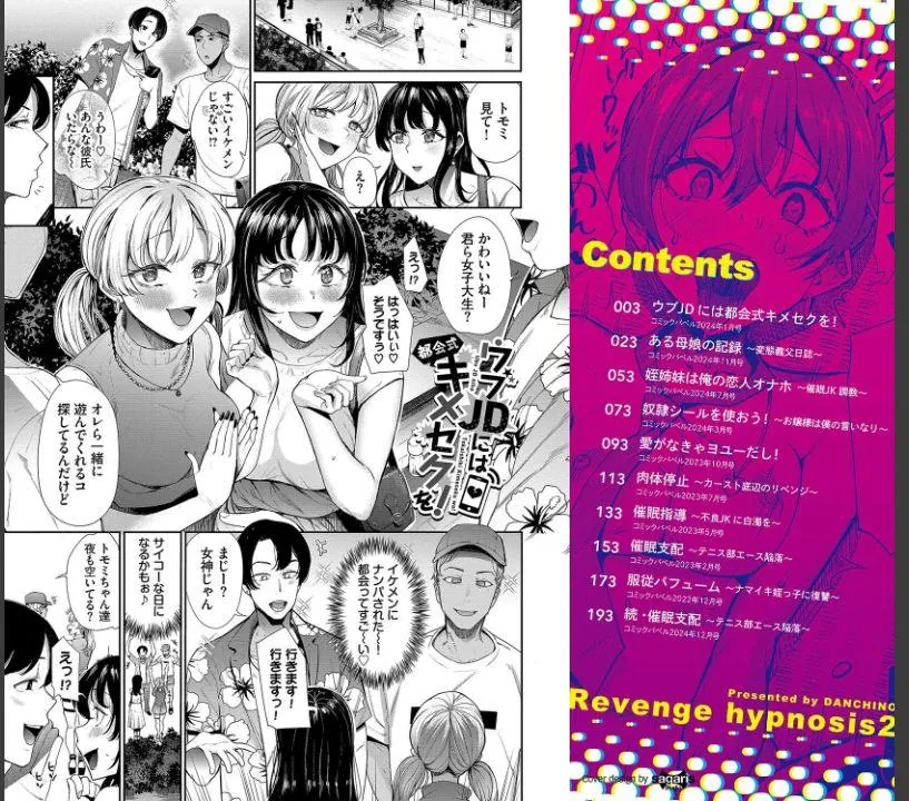高飛車お嬢様をエッチなシールで服従させてアヘ顔パイズリや、強気な姪っコ姉妹をアプリを使ってイチャラブ恋人オナホ化、問題児JK達に暗示をかけてワカらせ4P性指導などなど…ヤリすぎでイキすぎなハッピーエンド(?)淫猥9FUCK収録♪
