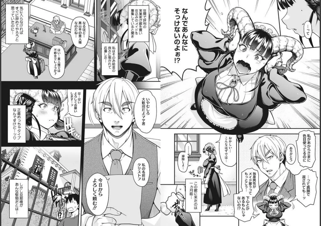とある実業家の屋敷でメイドとして働く黒山羊の娘。黒山羊の亜人種は定期的に下半身の剃毛をしなくてはならないのだ。夜中に一人で洗面所で処理しようとしたら、突然扉が開いて…。