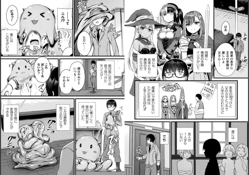 彼女(ニル)はエッチなスライム娘!? 大人気異世界ファンタジーラブ&ハーレムシリーズ! 高貴な王立学園に入学するも馴染めずにいる平民の少年ロードは、他者変身能力を持つ謎のスライム娘風生物ニルを部屋に保護し、伝説の勇者の血を引く女騎士や褐色の天才魔導士、癒し系ヒーラー、プリンセスといった本物とはまともに会話もできない学園のVIP美少女に変身してなりすましHをしてもらうという背徳的な行為を重ねていく。ニルの存在に疑問を感じつつも、力を増して分身や年齢変化といった多彩なプレイが可能になった変身生物による多数の美女・美少女とのハーレムHを堪能するロードは、やがて魔法学園地下で蠢く計画に巻き込まれてしまい――。コミックアンリアルで大人気の魔法学園他者変身シリーズが大幅加筆、描きおろしエピソードを加えて単行本化!