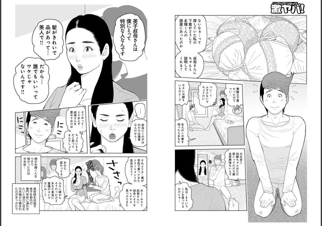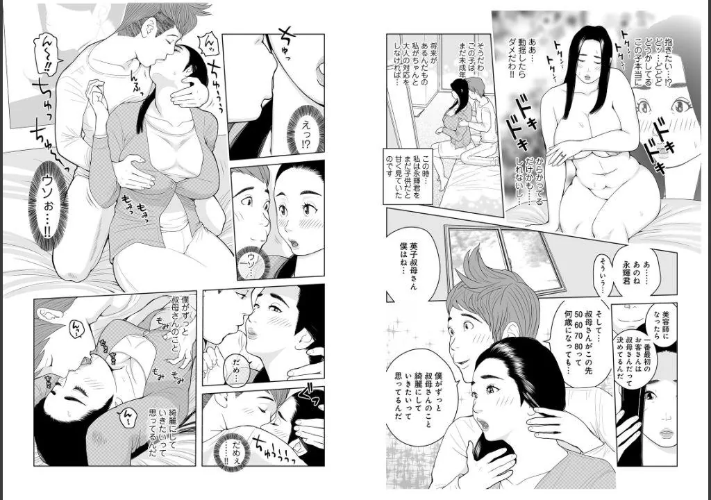 叔母さん出してもいい? 第2巻!あどけない顔に爆乳!そして激しいエッチのあかりきょうすけ第二弾。「叔母さんじゃないと…ダメ」第一話、美容師志望の甥が叔母につきまとう。ある日二人っきりになってしまった二人は一線を越えてしまう。「叔母さんじゃないと…ダメ」第二話、叔母さんとラブラブな関係の主人公。デートし叔母さんとセックスするたびに彼女の虜となっていく甥。「叔母さんじゃないと…ダメ」第三話、叔母さんと近親相姦をしている主人公。叔母さんの娘に気づかれピンチに陥るのだが…。「叔母さんじゃないと…ダメ」第四話、ヤリマンのイトコを助けた主人公。従妹からのアプローチも叔母さんと愛し合ってるからと断るのだったが…。「お母さんと…練習する?」第一話、母とラブホテルに入ることになった主人公。母のムチムチボディーにとりこになってしまった息子は筆おろしをしてもらう。「お母さんと…練習する?」第二話、彼女とSEXしたと告白する息子にショックを受ける母。しかし若い彼女よりも母の方が良かったという息子に母親は感激する。母のフェラには熱がこもり、欲望のままに息子の体を貪り続け……!?「妹が…そう言うんで。」第三話、妹とエッチしている主人公。ある時、妹が自分の同級生を家に招いた。彼女は出産のために里帰り中だったのだ。その子は主人公が、かつて好きだった女のコだった…。「妹が…そう言うんで。」第四話、妹と昔好きだった人が、どちらも妊娠して主人公にエッチしてくれと迫ってくる…。