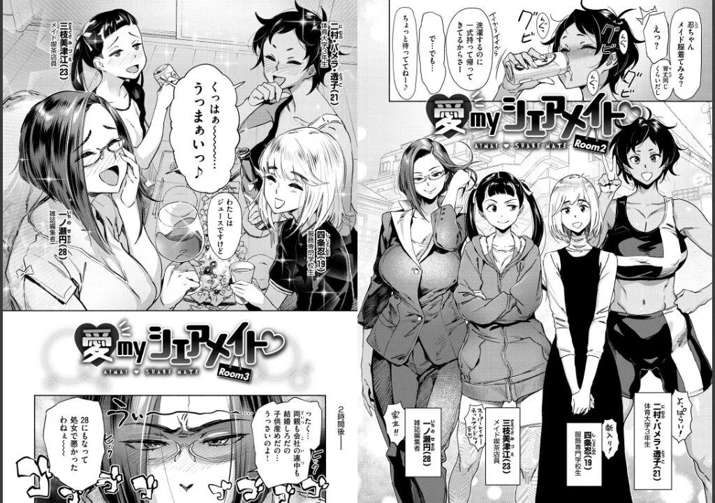 女性専用シェアハウスに入居してきた19歳の男の娘・四条忍ちゃん。一緒に暮らすことになった3人のルームメイトは、男に飢えたムチムチ発情女たちだった…? 『COMIC X-EROS』に連載された話題の乱交作品「愛myシェアメイト」5編を収録。