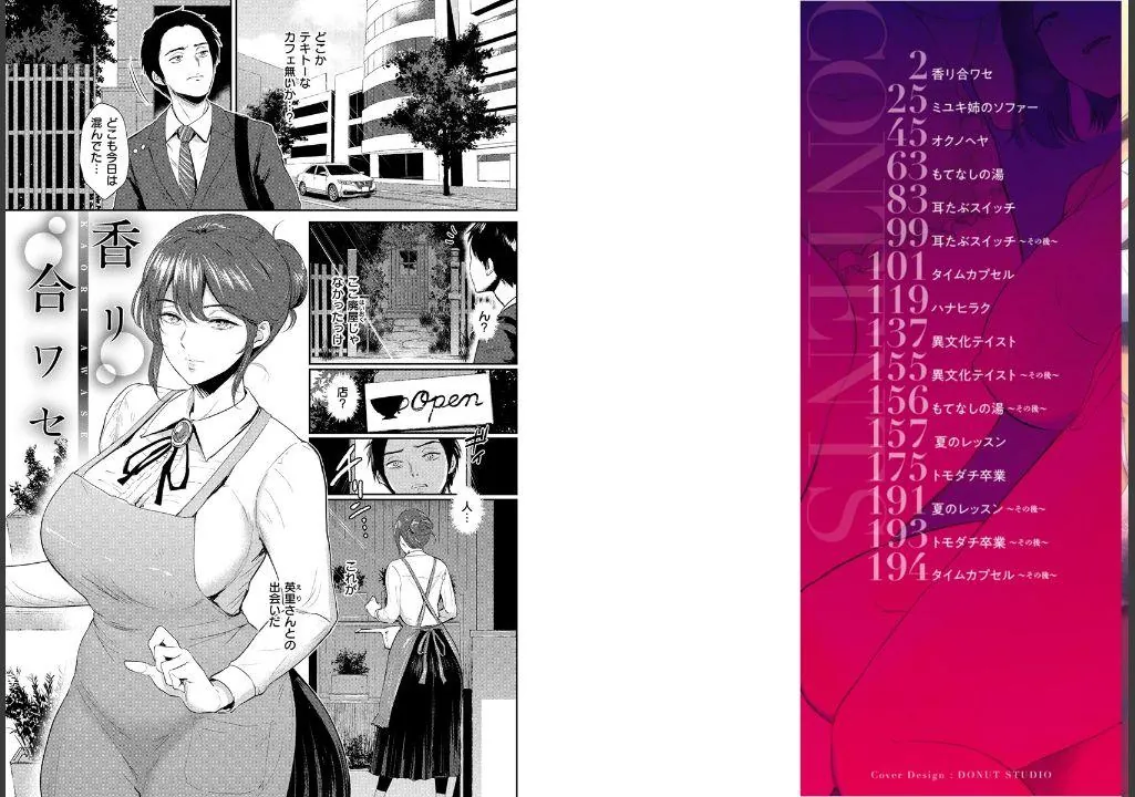 お風呂で彼女に癒やされて、懐かしの同級生とSEXトリップ、妖艶な喫茶店のオンナ主人と、性欲が収まらない若奥様などなど。全編にわたる大幅加筆修正に加えて10 ページにもおよぶ描き下ろしページを収録した意欲作!!