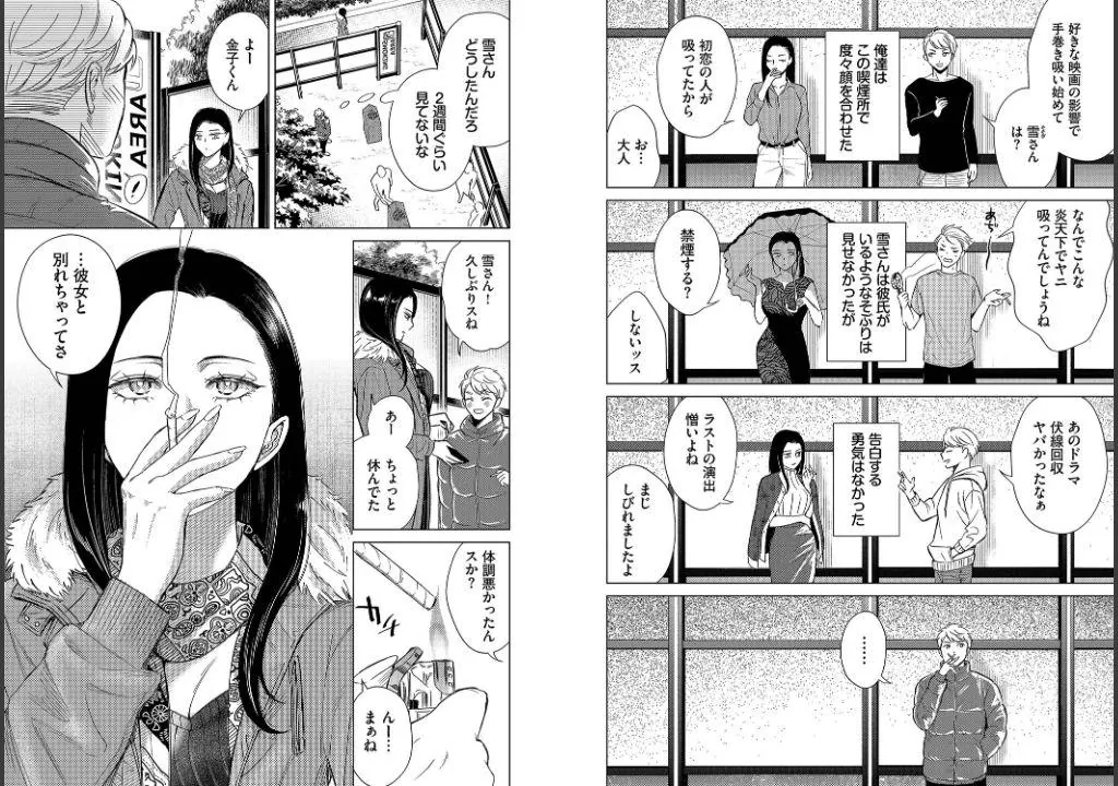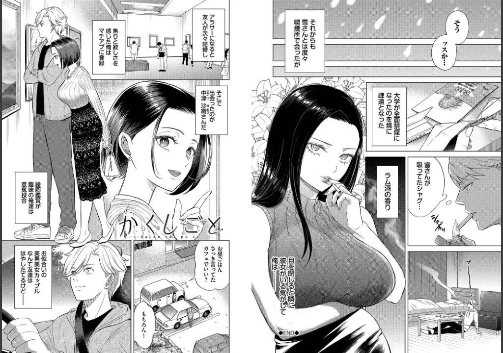 大学の喫煙所で出会ったクール美人なお姉さんとの女性上位Hや10年前に別れた男女の後悔噛み締めるすれ違いセックス、両想いなのに別れを告げるしかない初恋の人とのビターエロスなど、切ない恋心が交差するエピソードを描いた渾身の作品群があなたを誘う!