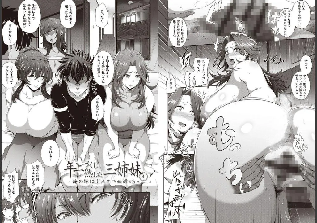大人気連載『年上づくし熟した三姉妹』の爆乳三姉妹をはじめ、彼女の母親、元アイドル人妻、マンションの管理人、生活苦から体を売る妻に、受験生の性処理をする淫乱叔母さん…といった大迫力ボディの雌たちがここに集結!!