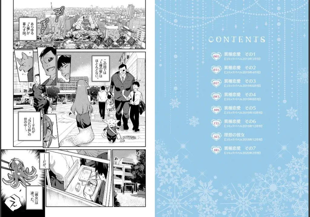 「容姿や種族が違えども、あなたのすべてが愛おしい…」全世界から注目を浴びる、人外×純愛Hの雄・みぞねの最新コミックスがついに発売! 好きになった『ヒト』はたまたま『異種族』だっただけ…恋と性に悩む人外娘達が紡ぎだす赤裸々な初体験語は、これぞ王道間違いなしっ! ツンデレ氷鬼やムッツリデュラハン、一途なケンタウロス、獣人サキュバスetc…『人間』を愛した7人の化物娘達を描く、胸キュン青春群像劇「異種恋愛」シリーズを完全収録! 人外玄人も純愛好きも大満足間違いなし、完全無欠のドキドキ人外ピュアHを見逃すな!!
