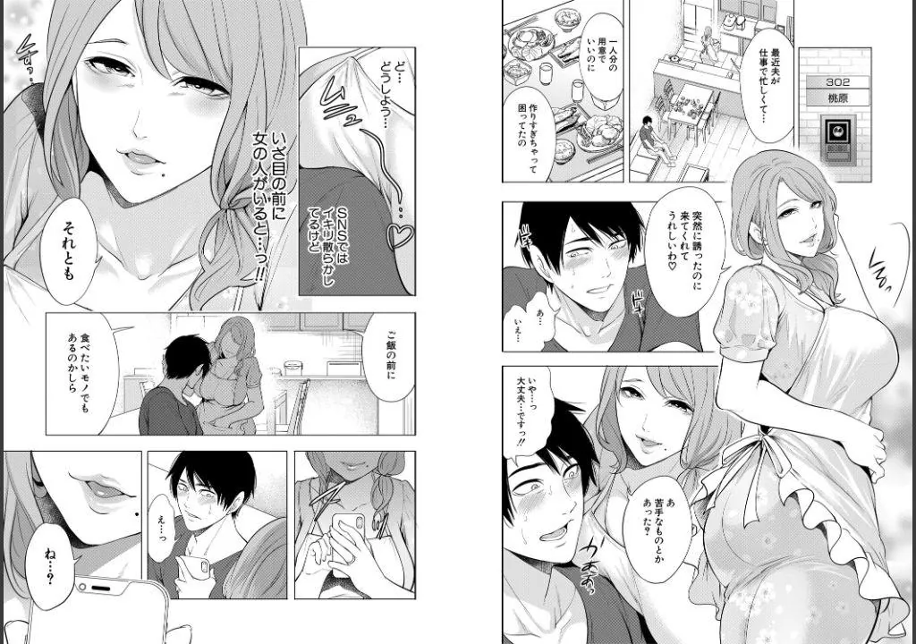 ある夜、お隣の人妻・桃原さんに呼び出され、裸エプロンで逆レ●プ、童貞を奪われてしまう!