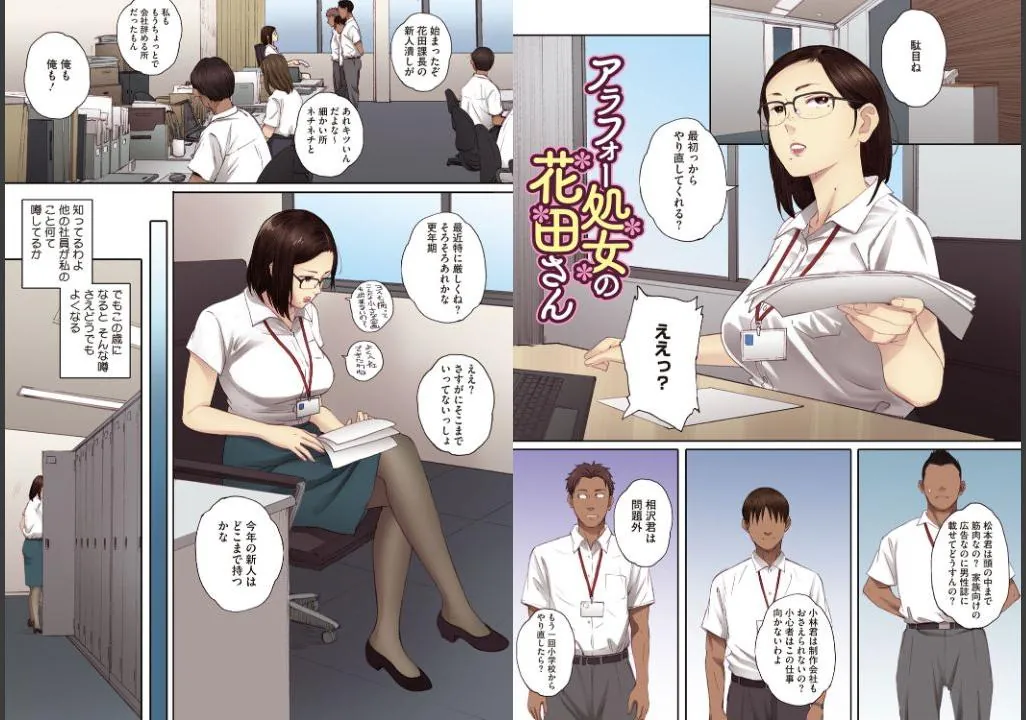 新人教育に特に厳しい花田課長。コトが起こったのは突然だった。新人の一人、相沢が土下座でSEXを懇願してきた。いい年して処女であることを気にしていた花田課長は、これも何かのきっかけと思い受け入れることにしたが…(アラフォー処女の花田さん)