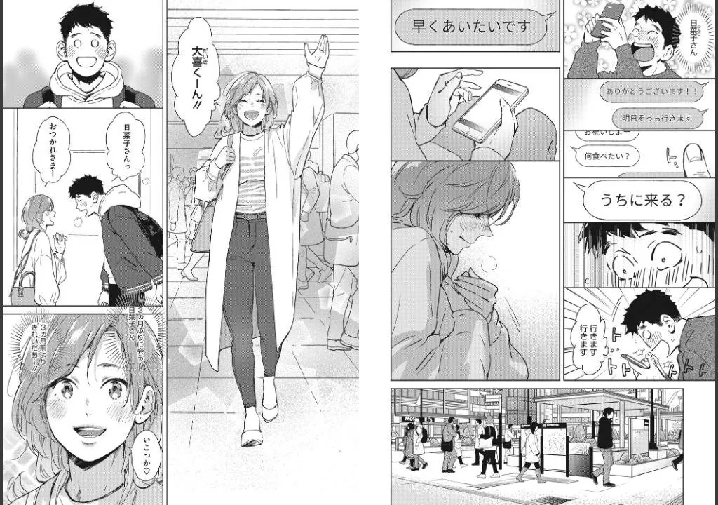 無事に大学合格した大喜は、初めて年上の彼女・日菜子さんの部屋に招かれることになった。日菜子さんの香りに緊張しながらベッドに座ると、彼女の口から「エッチしよ」の言葉が…。