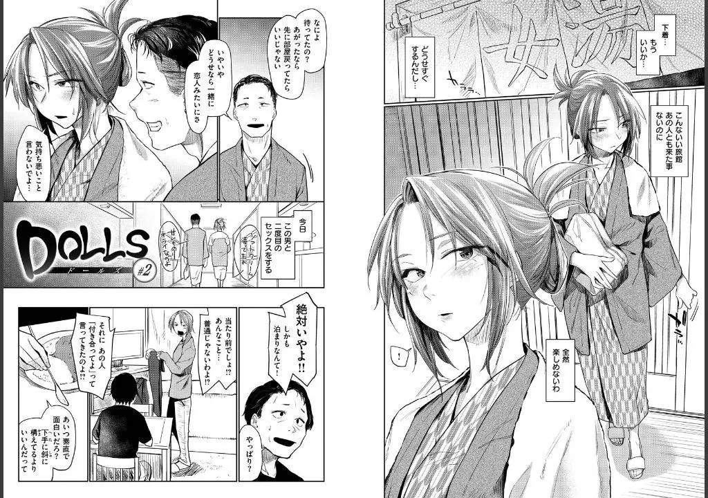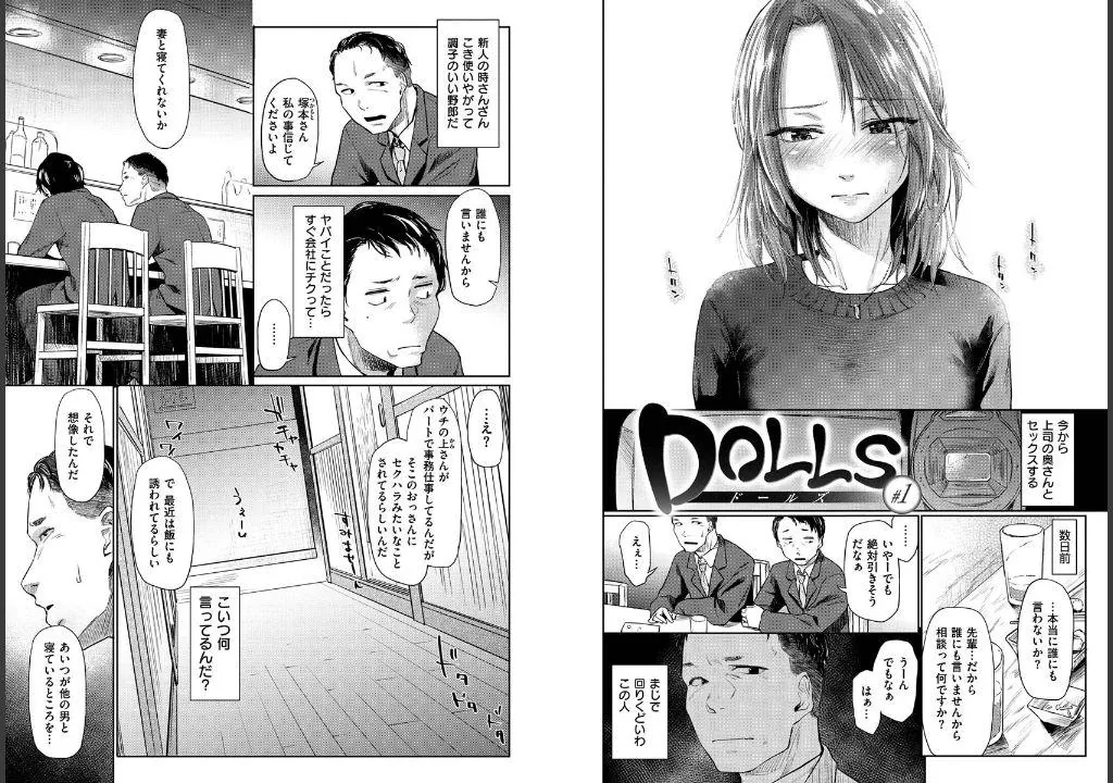 巨乳美人妻が夫の部下との情事にハマっていく表題作「DOLLS」は、80ページ以上に及ぶ大作で、丁寧な心理描写と濃厚な性描写が見どころ。さらに、描き下ろし後日談も収録。年下彼女に拘束プレイ、日焼け美少女の生ハメ初体験など、肉欲に溺れる性愛模様7作品収録。要所で盛り込まれる印象的でフェティッシュなシーンにも注目してください。